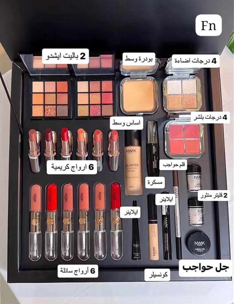 مجموعة مستحضرات تجميل NWK تأتي بتشكيلة متنوعة وعصرية تلبي جميع احتياجات المكياج اليومي والمناسبات الخاصة. تضم المجموعة منتجات متنوعة وبدائل عالية الجودة لمستحضرات تجميل معروفة، مثل أرواج بديل كيكو وأرواج كريمية ناعمة سهلة الدمج.