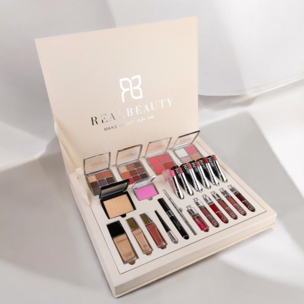 مجموعة شاملة من منتجات التجميل، تشمل: