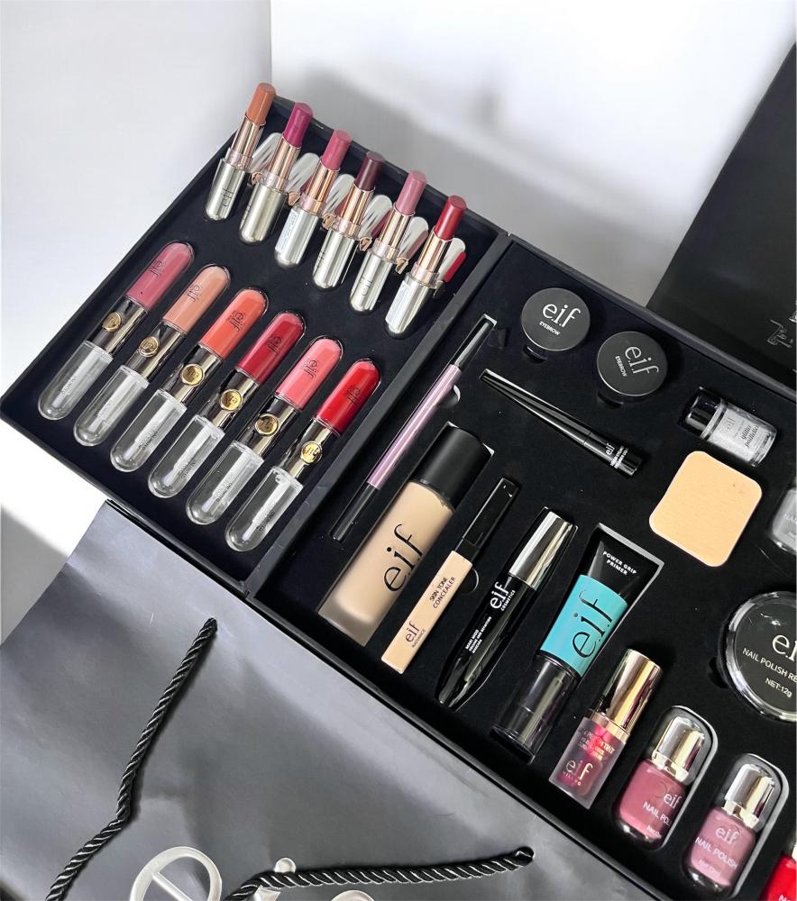 - مكياج متكامل: يشمل كل ما تحتاجينه للوجه، العيون، الحواجب، الشفاه، والأظافر.